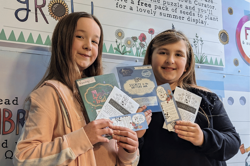 Having successfully solved a series of puzzles in the Horsham District Big Sow and Grow Mystery Trail they claimed their wildflower seed prizes from their local library.