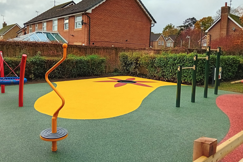 Aimed at children from 4-12 years old, the new play area includes a basket swing, an in-ground trampoline, a twister pole and somersault bars, alongside seating and play panels.