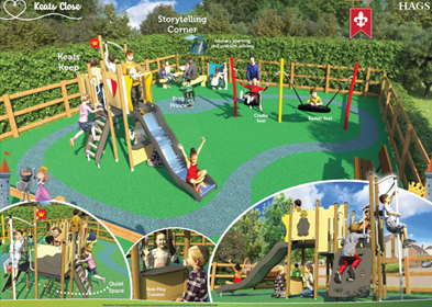 This will include ‘Keats Keep Castle’ multi-play unit, a Frog Prince springer, basket and cradle swings and a story telling corner with treasure map.