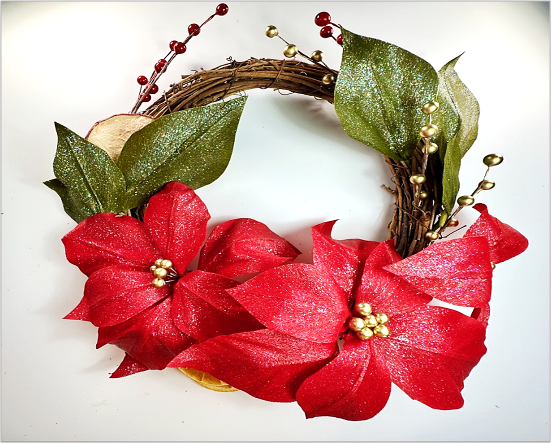 Create a beautiful, everlasting Poinsettia crepe paper wreath.